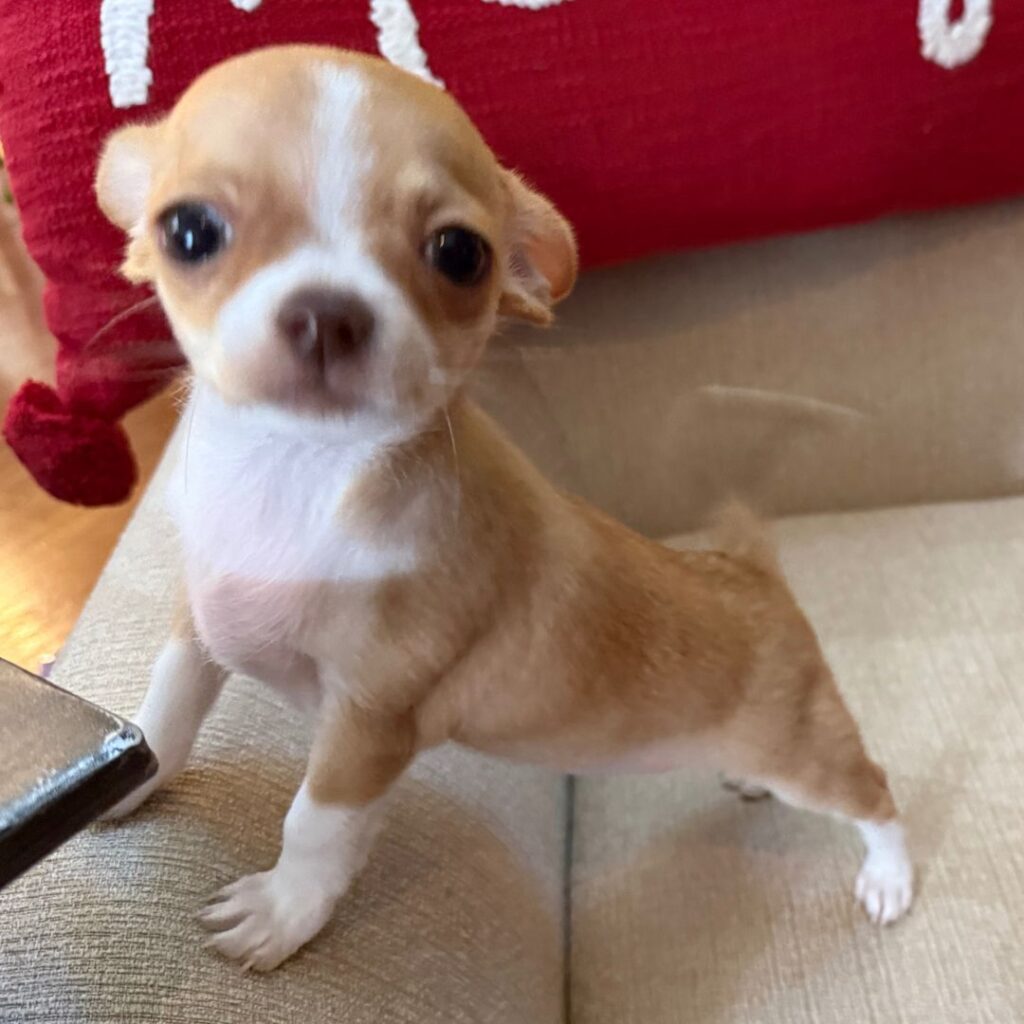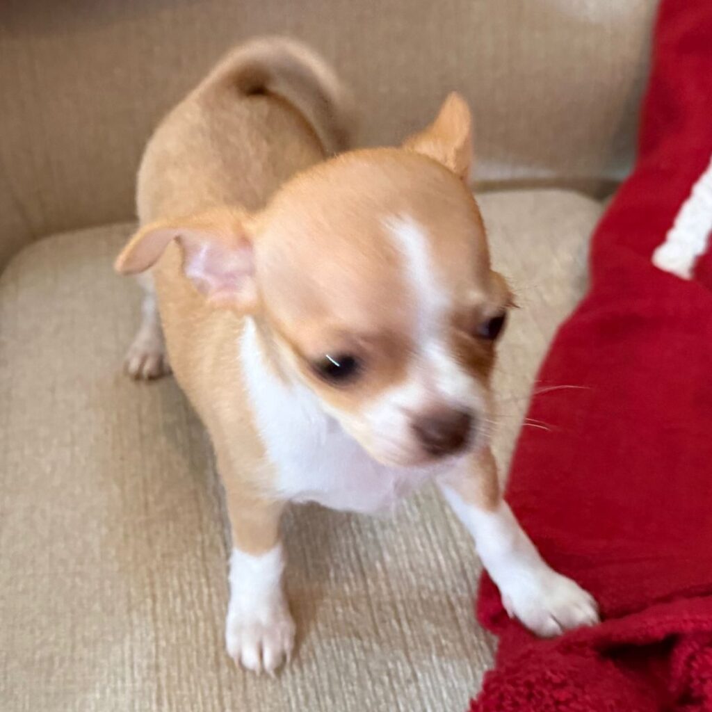 Hi, I’m Dior! I’m an 11-week-old female Chihuahua with a beautiful fawn & white coat,