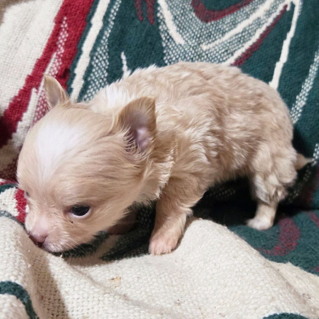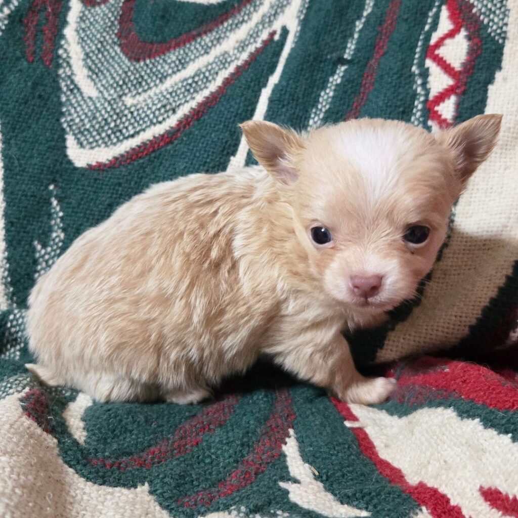 Hi, I’m Honey! I’m a 12-week-old female Chihuahua with a beautiful cream coat,