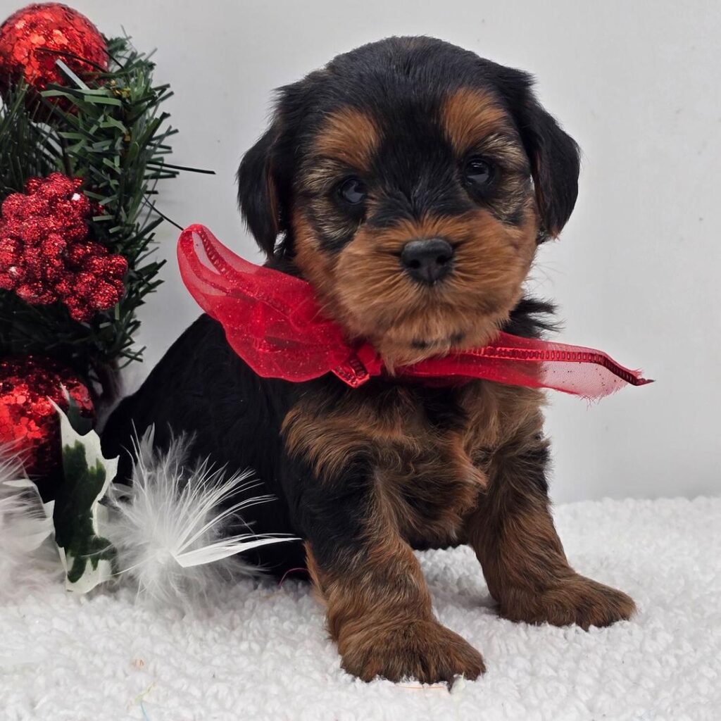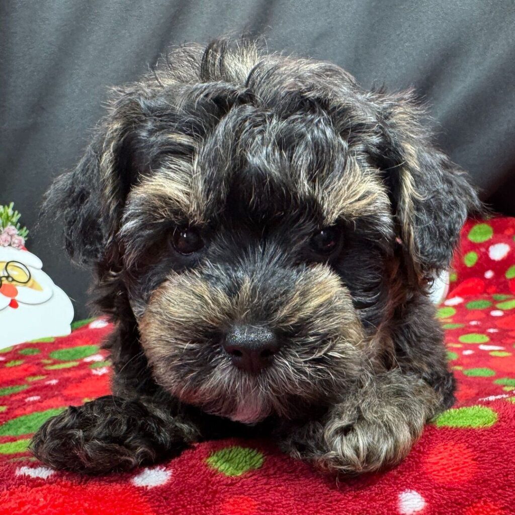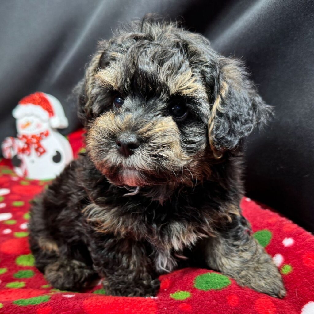 Hi, I’m Bobby! I’m a 5-week-old male Yorkiepoo. My dad is a Poodle and my mom is a Yorkshire Terrier. I have a beautiful black & tan coat, and I was born on November 18, which makes me a Scorpio sign. I’ll be ready to go home to my forever family after January 13, once I’m grown enough to leave my litter. When I reach my adult size, I should weigh between 5–12 lbs. I can’t wait to make your home my forever playground.
