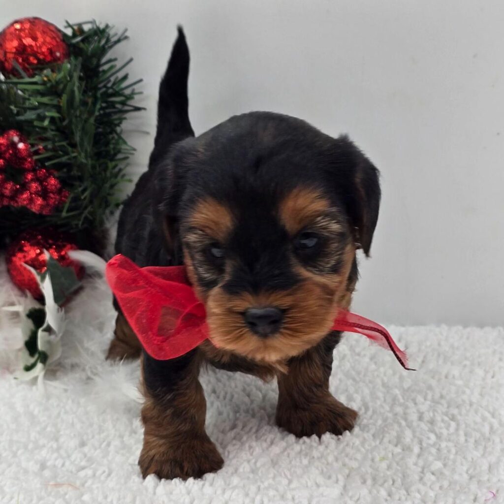 Hi, I’m Ciara! I’m a 7-week-old female Yorkshire Terrier with a beautiful black & tan coat, born on November 7, which makes me a Scorpio sign. I’ll be ready to go home to my forever family after January 2, once I’m grown enough to leave my litter. When I reach my adult size, I should weigh between 4–6 lbs. I’m APRI registered. I will be your faithful friend and the love of your life.