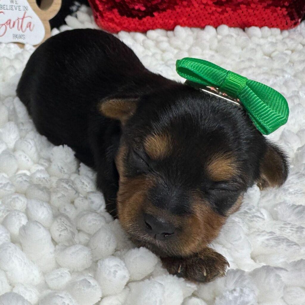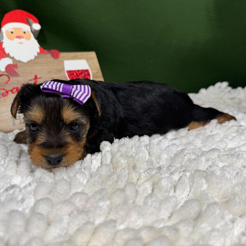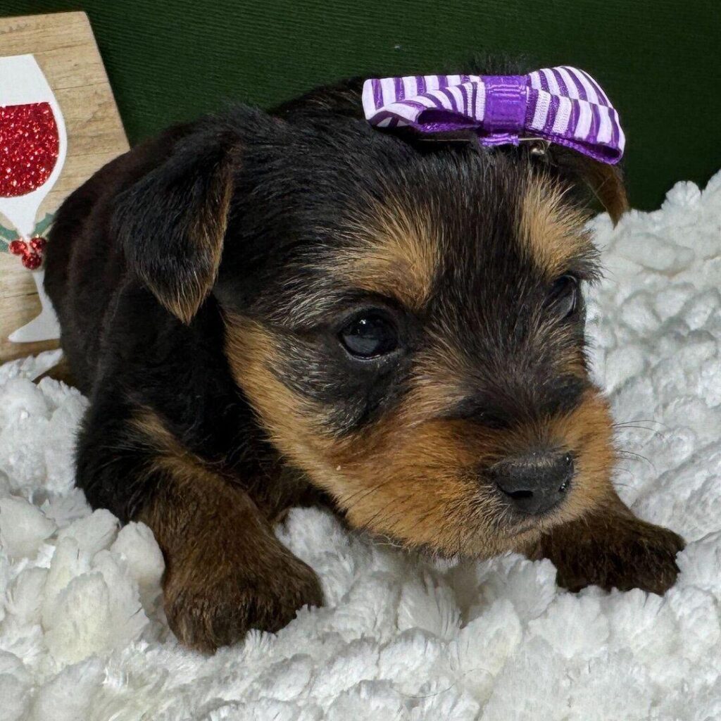 Hi, I’m Hadley! I’m a 5-week-old female Yorkshire Terrier with a beautiful black & tan coat, born on November 19, which makes me a Scorpio sign. I’ll be ready to go home to my forever family after January 14, once I’m grown enough to leave my litter. When I reach my adult size, I should weigh between 4–6 lbs. I’m ACA registered. I’m excited to bring my puppy charm and joy to your home